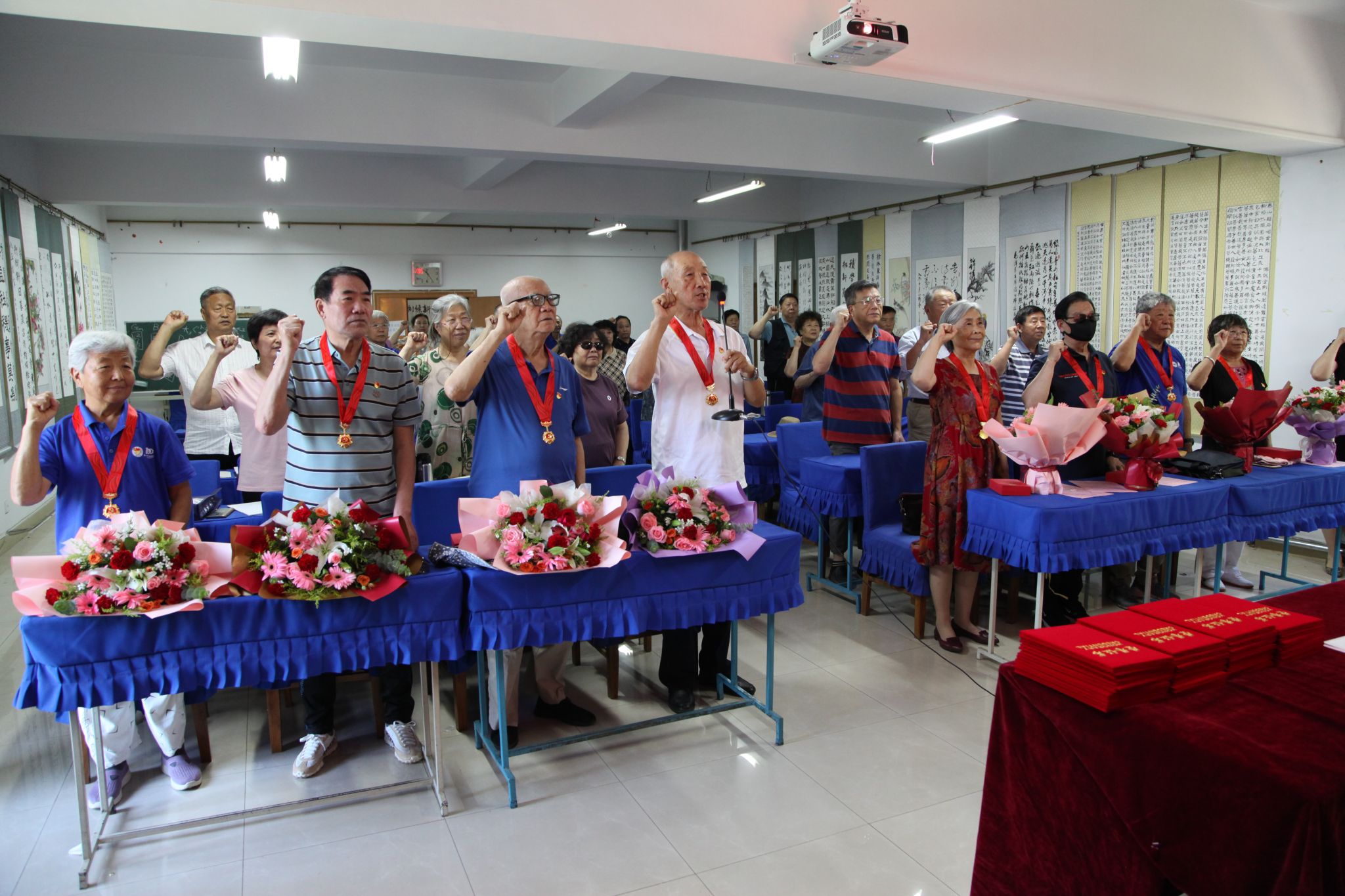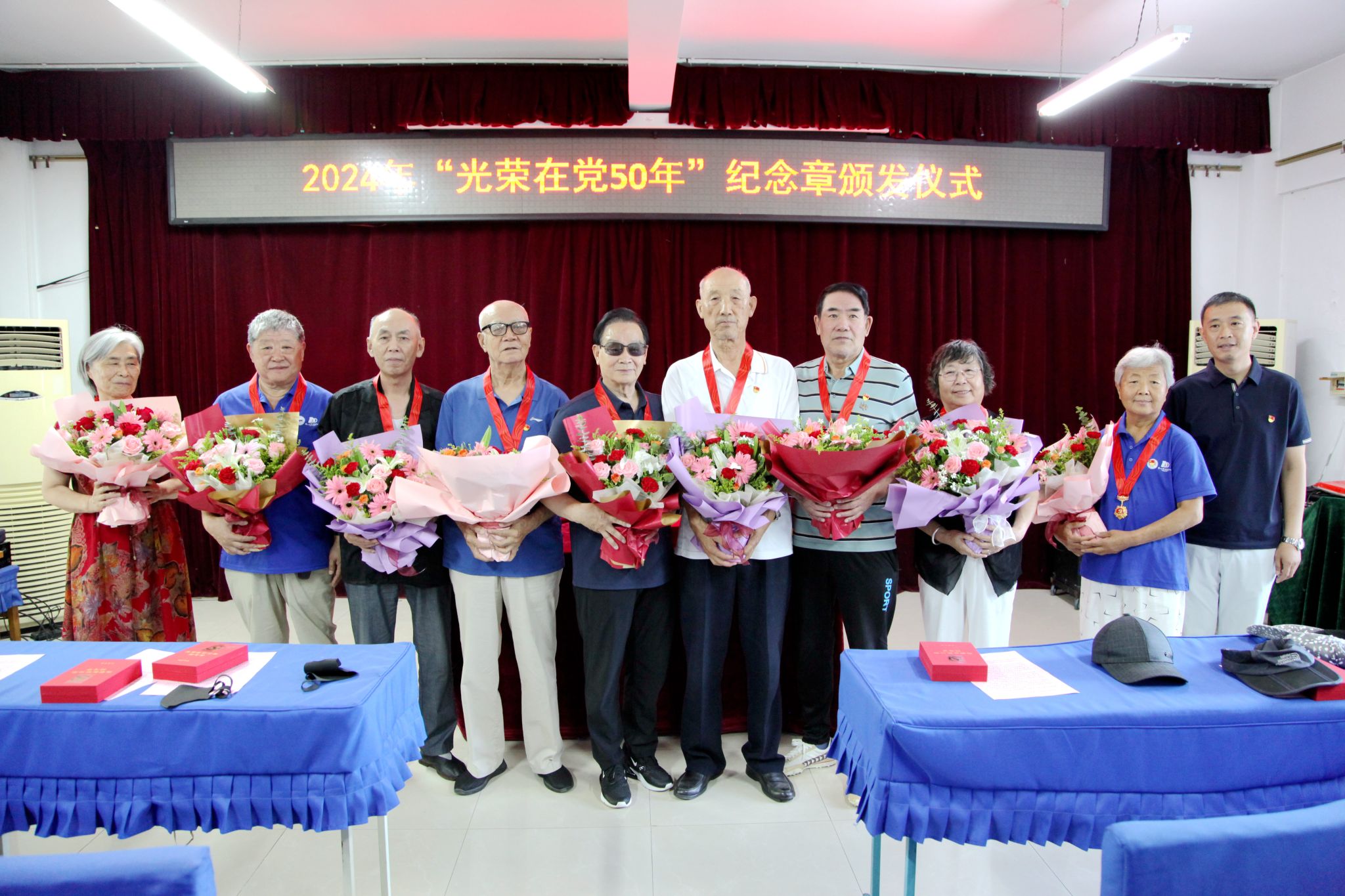 离退休党委书记李瑛同志在仪式上发言,对老同志一心为党一生奉献致以崇高敬意,感谢老同志一直以来为党的事业和学校的发展建设作出的贡献和努力,号召全体党员向所有“光荣在党50年”的老党员学习,赓续党的光荣传统和优良作风,坚定信念,凝聚力量,在迈进新征程,奋进新时代中展现新作为、新气象。仪式上,所有到场的老同志佩戴“光荣在党50年”纪念章进行庄严宣誓,重温入党誓词。仪式后,老党员们合影留念,记录下这光荣的时刻。