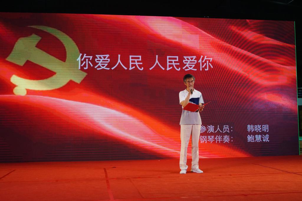 白发苍苍的老同志用《我和我的祖国》等18个歌唱、舞蹈、朗诵、器乐节目抒发了浓浓的爱国情感,展现了老同志“党爱人民、人民爱党”的最高心声, 唱出了对党的永恒挚爱。文法学院研究生表演的的诗朗诵《少年中国说》振奋人心,道出了当代青年之责任,也道出了青年奋勇向上之决心。第二幼儿园的小朋友们表演的舞蹈《花儿朵朵向太阳》,可爱的笑脸阳光灿烂,祖国的未来如花绽放,小小的向日葵永远向着党。