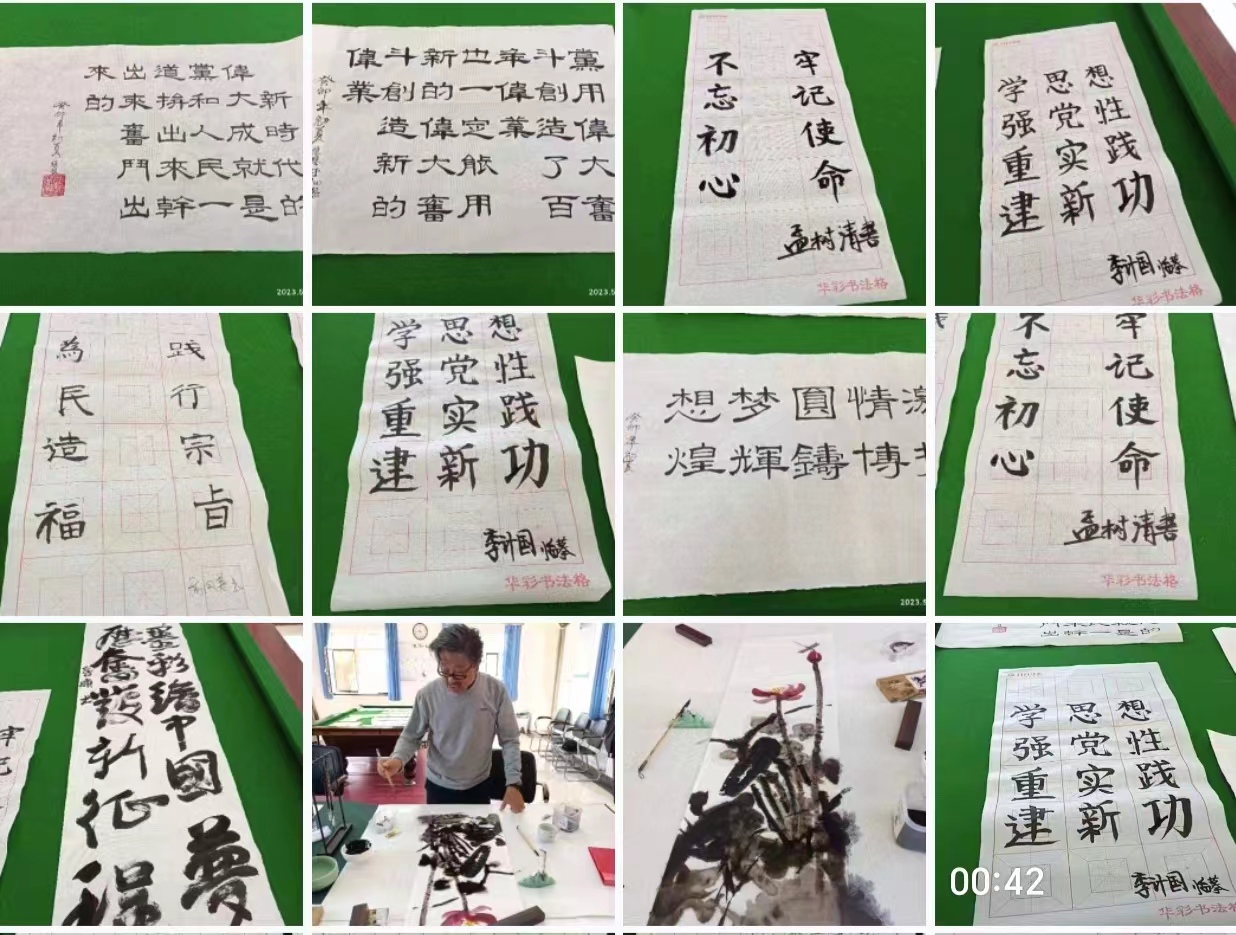 为扎实开展学习贯彻习近平新时代中国特色社会主义思想主题教育,把习近平新时代中国特色社会主义思想转化为坚定理想、锤炼党性和指导实践、推动工作的强大力量,5月13日至20日,退休第十五党支部联合校关工委举办“挥墨彩绘中国梦,踔力奋发新征程”主题党日系列活动。