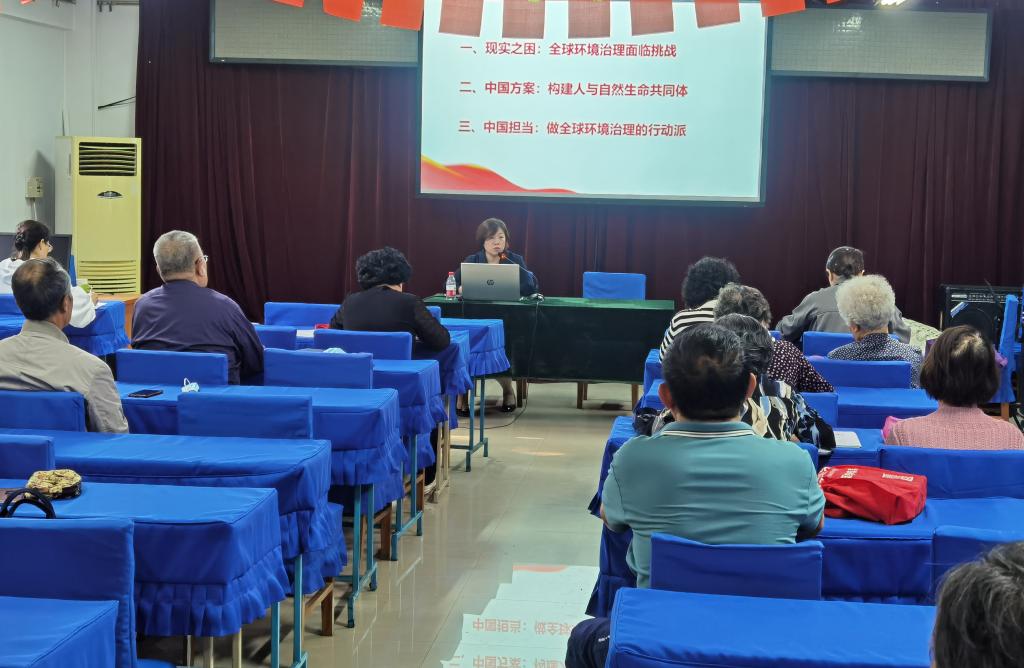 按照离退休党委政治理论学习安排,9月29日下午,在教职工活动中心201室,离退休党委邀请校党委讲师团成员、马克思主义学院黄娟教授作题为《坚持人与自然和谐共生-习近平生态文明思想解读》的专题讲座。参加人员有离退休党委委员、各党支部书记、委员及工作人员。