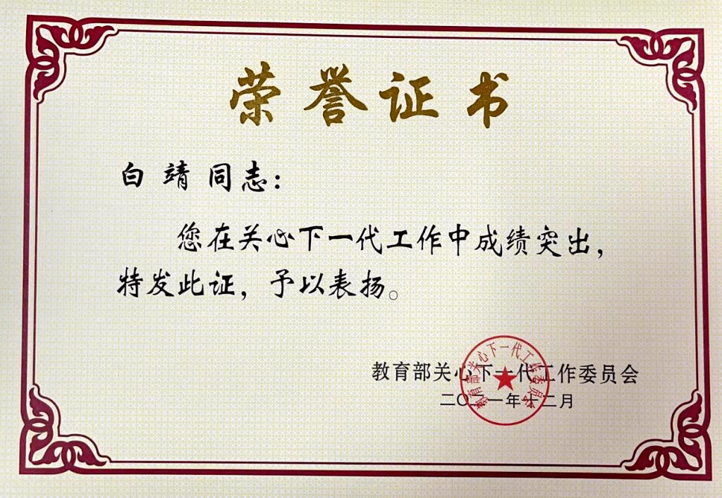 为深入贯彻落实习近平新时代中国特色社会主义思想和习近平总书记对关心下一代工作的重要指示,总结经验,表扬先进,宣传典型,在教育部关工委成立30周年之际,教育部关工委对在全国教育系统关工委中做出突出成绩的先进集体和先进工作者进行了表彰。乌鸦传媒关心下一代工作委员会获评“全国教育系统关心下一代工作先进集体”,白靖老师获评“全国教育系统关心下一代工作先进工作者”。