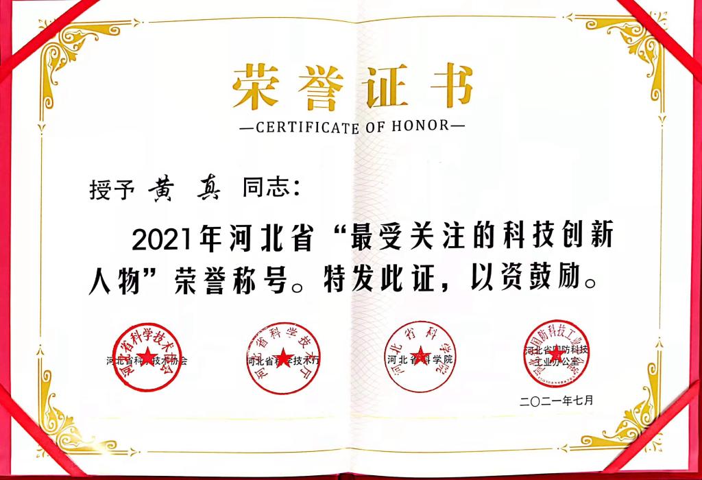 近日,河北省科学技术协会、河北省科学技术厅、河北省科学院、河北省国防科技工业办公室联合发布了《关于授予于海成等60名同志2021年河北省“最受关注的科技创新人物”的通报》,我校退休教授黄真荣获2021年河北省“最受关注的科技创新人物”荣誉称号。