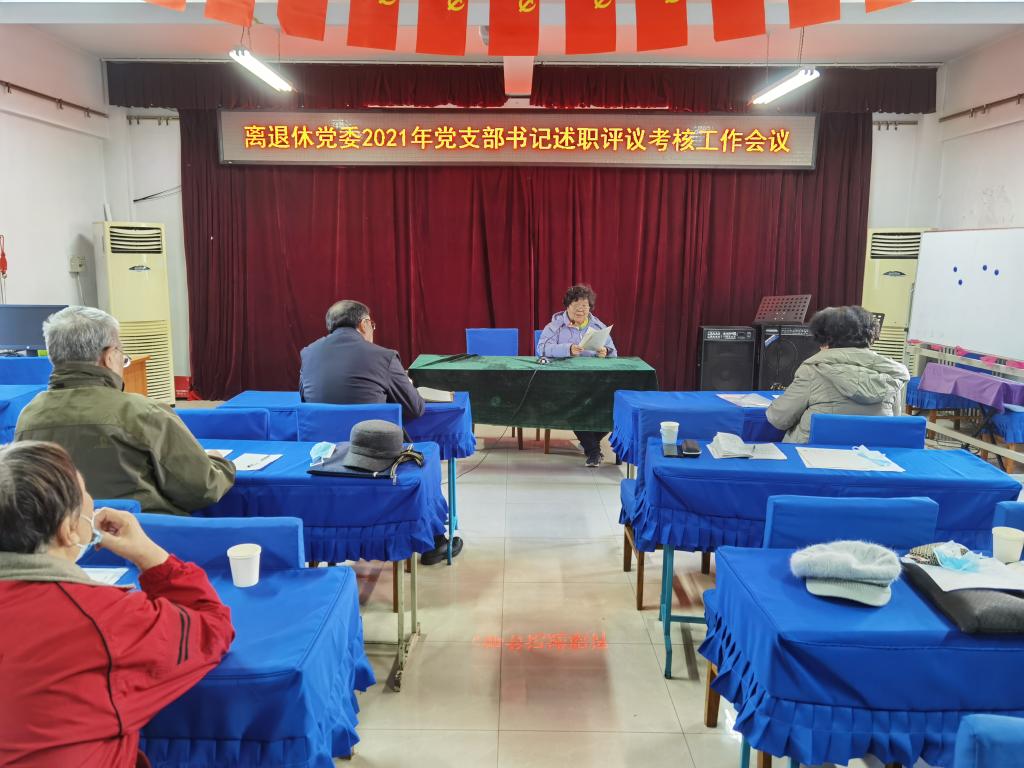 按照《离退休党委2021年度党支部书记述职评议考核工作方案》相关工作安排,述职评议以党支部书记现场述职汇报的形式进行,述职结束后进行现场测评。党支部书记围绕党的政治建设、思想政治工作、党的组织生活、党风廉政建设四个方面并结合支部书记进行述职,重点介绍了支部活动开展情况、政治理论学习情况、意识形态工作特别是微信群管理情况、党史学习教育情况等,并分析了党支部工作中存在的问题以及今后工作计划和设想。