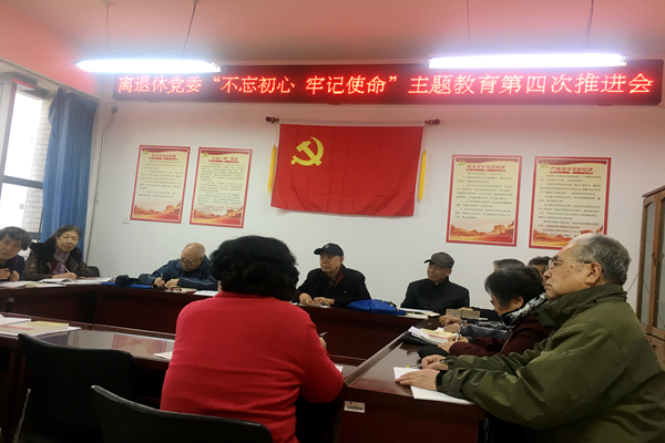 为扎实推进“不忘初心、牢记使命”主题教育,11月14日,在教职工活动中心204室,离退休党委召开主题教育第四次推进会。各党支部书记参加会议。