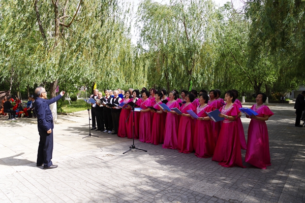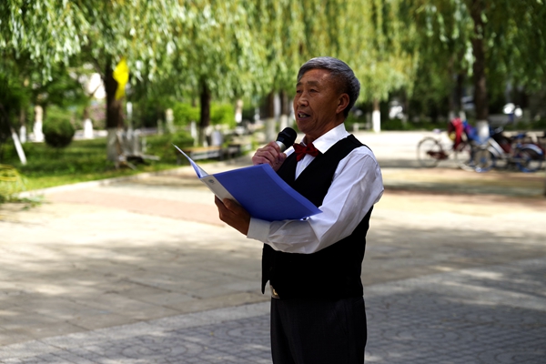 5月23日下午,我校秋韵艺术团在家属区健身小广场举办庆祝建团两周年文艺演出,离退休工作处处长李文波应邀参加。
