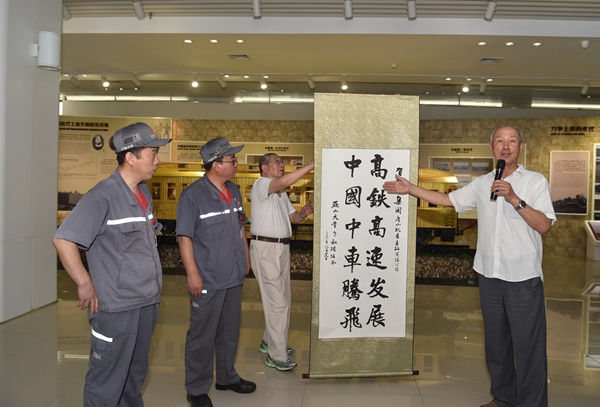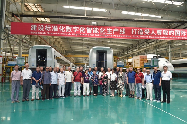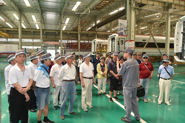 在中车集团讲解员带领下,老同志们参观了总装配车间、公司发展历史成果展览,详细了解了我国第一台蒸汽机车、第一台现代化机车、第一台红皮空调车、第一代动车(采用德国西门子技术)和第一台高铁复兴号列车(具有完全自主知识产权)的产生及发展历史。老同志们听闻中车公司研制的我国首列时速350公里长编组“复兴号”中国标准动车组已经开始型式试验,并正在位于北京东郊的铁科院环形试验线上开展试验工作后,更是激动不已,对我国高速动车组技术实现全面自主化,中国高铁走向世界感到无比自豪。