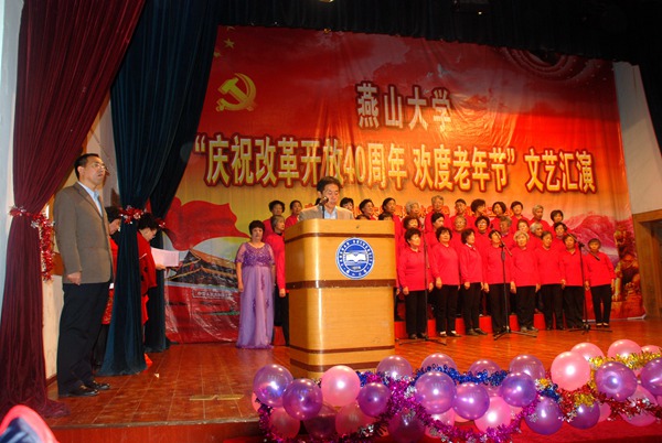 10月17日,在纪念我国改革开放40周年和中国传统节日“老年节”来临之际,我校离退休教职工在第二教学楼演讲厅举办了“庆祝改革开放40周年欢度老年节”文艺汇演。校党委常委王宝诚、学校老领导、离退休教职工代表200余人观看了演出。离退休党委书记、处长李文波主持开幕式。