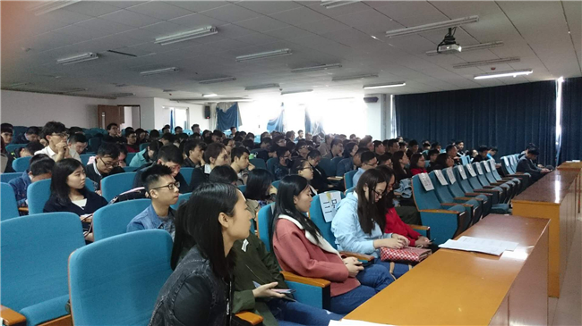 白老师围绕砥砺奋进、不忘初心、与时俱进、顶层设计四个关键词讲述了当今的时代判断与战略安排,指出中国特色社会主义已进入新时代,并阐明了在时代背景下十九大召开对全球的巨大影响。白老师强调,不忘初心,不忘的是新时代中国共产党的使命与担当,他列举了从20世纪初到改革开放以来人民生活水平的变化,并通过“四个自信”指明要实干兴邦,以此推进伟大事业。与时俱进,应该学习习近平新时代中国特色社会主义思想,时刻牢记党的宗旨,切实保障人民群众的利益。新时代实现中华民族伟大复兴的战略安排为其顶层设计内涵。白老师旁征博引,在场同学无不热烈鼓掌,现场氛围良好。