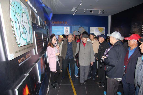 博物馆解说员带领老党员依次参观了地球科学厅、柳江盆地地质遗迹厅、岩矿化石标本厅、秦皇岛国家地质公园景观厅、多媒体报告厅五个展厅,向老同志介绍了柳江盆地的海陆变迁历史。馆内展示内容涵盖了地球科学、柳江瑰宝、岩矿化石标本赏析、秦皇岛地质风光等内容,多处采用多媒体形式,把晦涩难懂的地质学知识浓缩成文字、图片,通俗易懂,简单明白,富于科普教育和地学知识宣教功能。