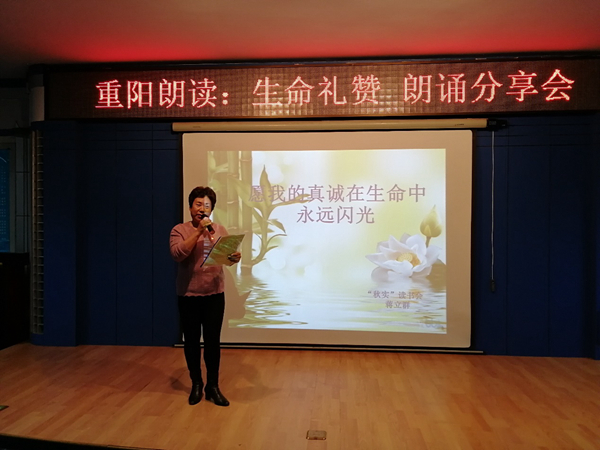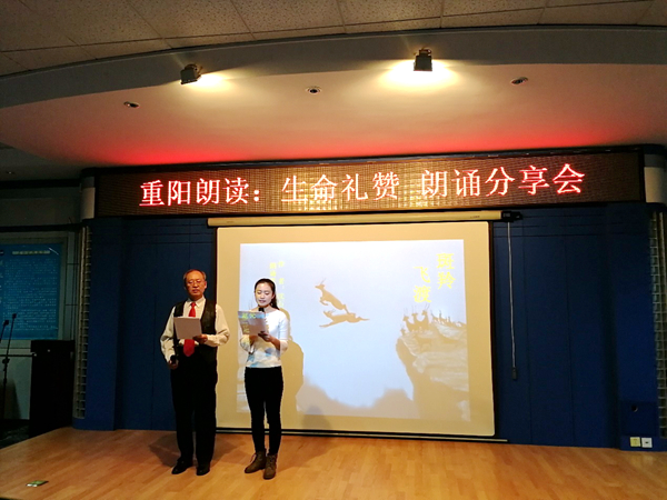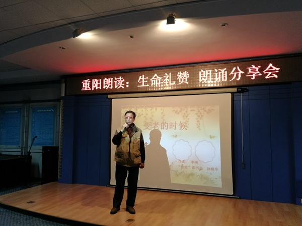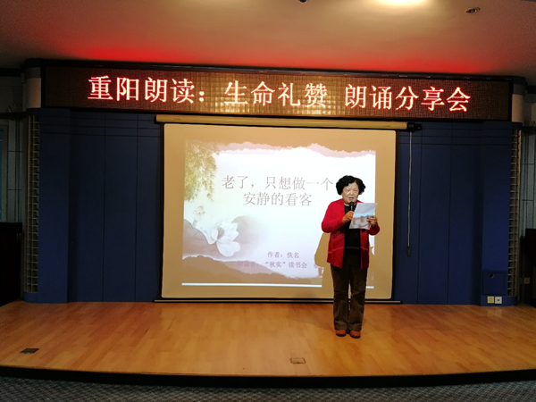 为了倡导全民阅读,激发广大师生的阅读热情,助力校园文化建设,11月10日晚上7点,由图书馆党总支和离退休工作处“秋实”读书会合作举办的“重阳朗读:生命礼赞”朗诵分享会在图书馆718报告厅举行。离退休“秋实”读书会部分老同志以及来自各学院的师生读者参加了本次活动。