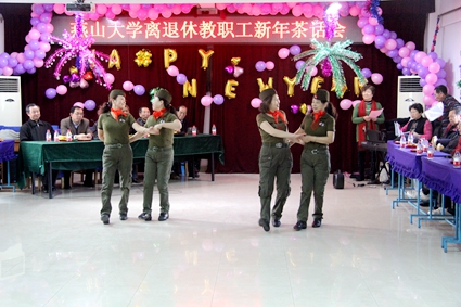 茶话会上,秋韵艺术团为大家表演了《夕阳红》、《草原上升起不落的太阳》的经典歌曲,为老同志们送上节日的祝福;水兵舞《唱支山歌给党听》节奏欢快、舞姿轻盈,展现出老同志们人老心不老的良好心态和健康向上的精神风貌。茶话会后,离退休工作处还为老同志安排了套圈、飞镖、青蛙跳水等游艺活动。老同志积极参与,乐在其中,活动现场气氛热烈。