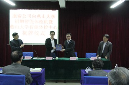 此前,康泰医学系统股份有限公司技术人员对我校智能体检中心工作人员进行全方位培训,以确保为老同志体检工作的顺利进行。揭牌仪式之前,40余位老同志进行了健康检查。老同志对体检中心的成立感到十分高兴,感谢学校对老同志的关心,也为学校培养出优秀的校友感到自豪。胡坤校友此次向母校捐赠的大型智能体检机有助于我校为全体离退休教职工建立健康档案,实施健康管理,对老同志们幸福健康的晚年生活有十分重要的意义。此次捐赠,也充分体现了校友对母校发展建设的大力支持和燕大学子对老教师、老领导的深切关爱。