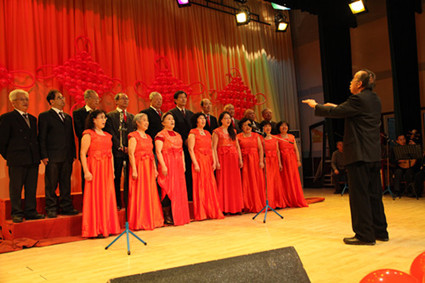12月26日,里仁学院在大学生活中心报告厅举办2014年教职工元旦联欢会,我校老教师合唱团受邀参加演出。老教师合唱团为此次演出精心准备,演唱了《小路》、《阳光路上》两首经典曲目,为里仁学院的广大师生送去了新年的美好祝福。老教师合唱团的表演得到了大家的阵阵掌声。
