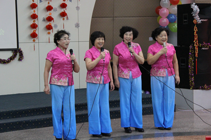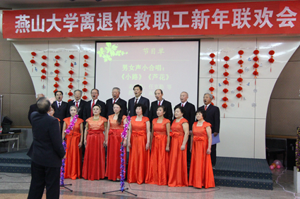 联欢会在《喜洋洋》的歌曲中拉开了序幕,节目异彩纷呈。由离退工作处全体同志表演的小合唱《革命人永远是年轻》,女生小合唱《美丽的鹤乡》、诗朗诵《沁园春·伟人毛泽东》、女生二重唱《感恩》给联欢会增添了祥和的气氛;民歌联唱《沂蒙山小调》、男声独唱《万家灯火》表达了对党和祖国的热爱;男女生二重唱《尕妹妹跟我下四川》、舞蹈《天下黄河九十九道弯》、女生二重唱《纺织姑娘》表达了对家乡的挚爱和对家乡的挚爱和对幸福生活的向往。单口相声《改节目》给整个联欢会带来了几分幽默气息。联欢会在男女生小合唱《小路》、《芦花》中落下帷幕。