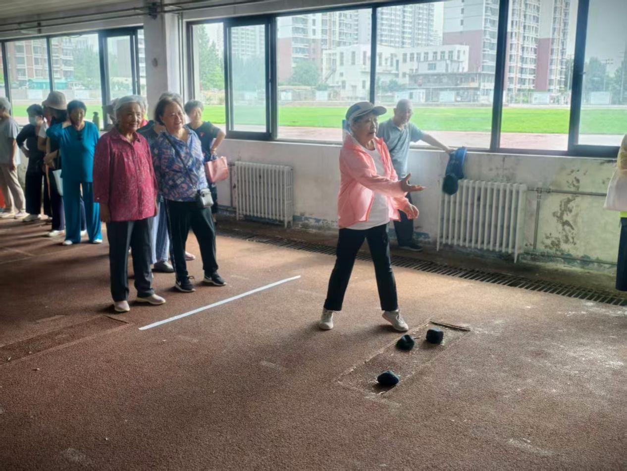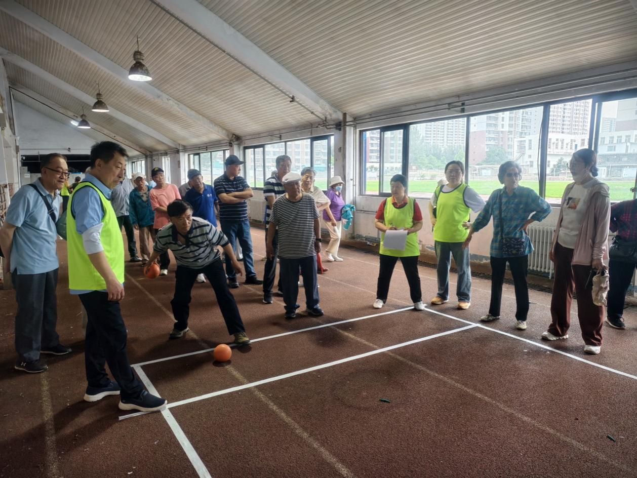 本次运动会设置模拟保龄球、踢足球入门、投标、套圈等七个兼具娱乐性与适老性的趣味竞技项目。在“模拟保龄球”项目区,老同志们手持软质球精准投掷,稳健身手引来阵阵喝彩;