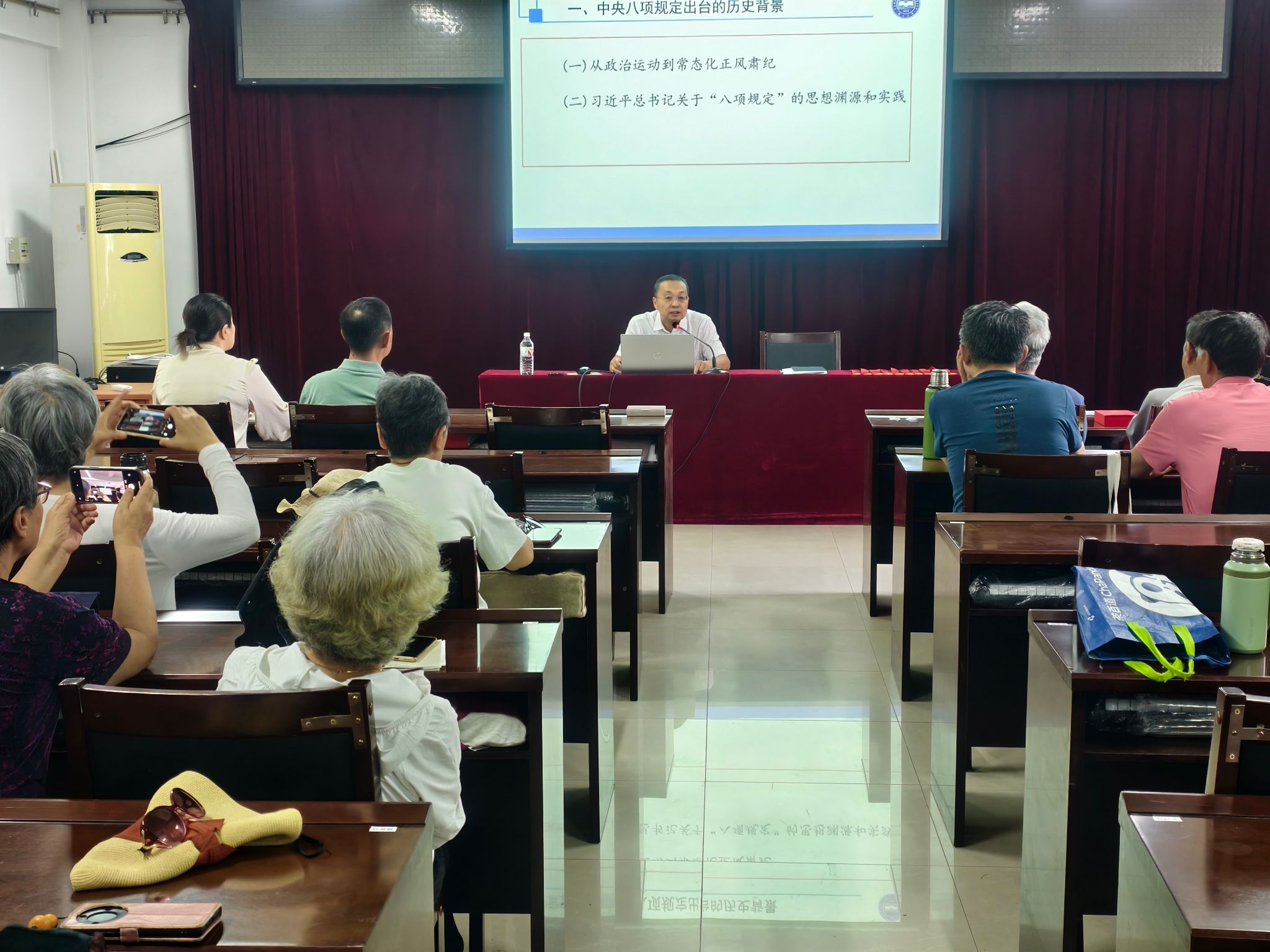 6月24日,离退休党委邀请体育学院党委书记任海为老党员开展中央八项规定精神专题报告会。
