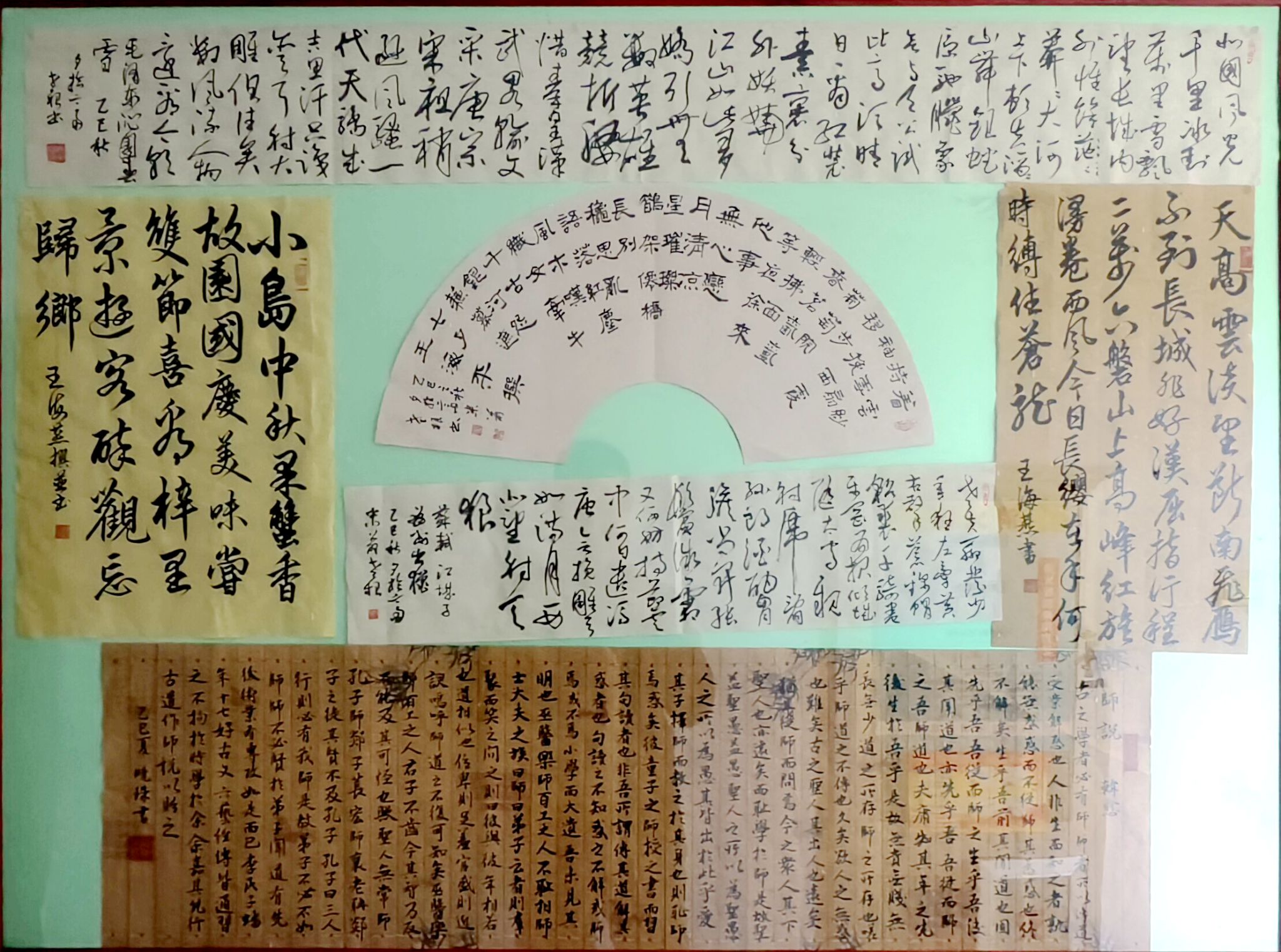 9月下旬,离退休秋鹤书画协会在教职工活动中心二楼举办“爱我中华”主题书画展。参展作品皆出自离退休老同志之手。他们以笔为媒、以墨为介,将对祖国的热爱与深情,尽数融入一幅幅书画之中。