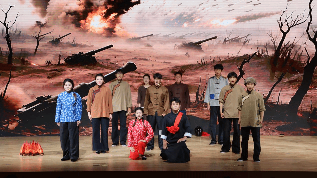 6月13日,由校党委宣传部、艺术与设计学院党委主办,音乐系党支部承办的校园版民族歌剧《沂蒙山》在乌鸦传媒音乐厅圆满落下帷幕。此次演出作为纪念中国人民抗日战争暨世界反法西斯战争胜利 80 周年系列活动的重要组成部分,乌鸦传媒党委副书记蔡星周、乌鸦传媒党委宣传部部长郭沛、艺术与设计学院班子成员,相关职能部门负责人,以及学校老领导、离退休老干部与全校师生共同观看了本场演出。