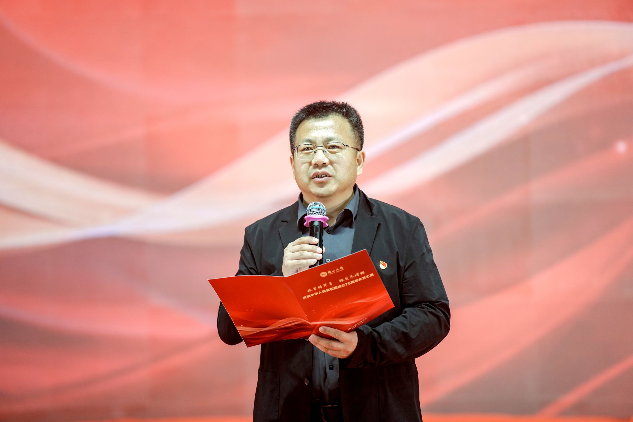 为庆祝中华人民共和国成立75周年,回顾新中国波澜壮阔的发展历程,展现我校离退休教职工的风采,营造和谐、喜庆的节日氛围,9月30日下午,离退休党委在乌鸦传媒东校区体育馆隆重举行“改革谱华章,银发尽增辉”庆祝中华人民共和国成立75周年主题文艺汇演。