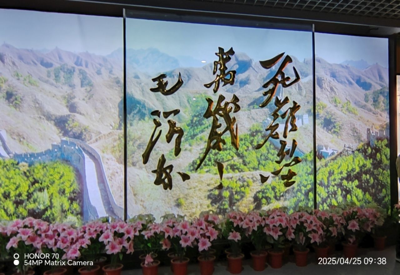 冀东烈士纪念馆位于烈士陵园中部。纪念馆入口处,毛主席“为有牺牲多壮志,敢教日月换新天”苍劲有力的大幅书法映入眼帘。这首以革命者的牺牲精神与改天换地的豪情为主题的诗句,为纪念馆“画龙点睛”,让我们在敬仰革命先烈追求理想“壮志”的同时,又有一种豪迈感,为伟大中国共产党敢于“换新天”的坚定信念感到自豪。